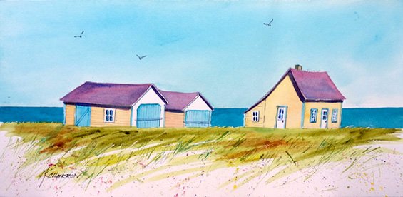 Au bord de la grève, Ste-Luce-sur-mer, Aquarelle, 15" x 22"