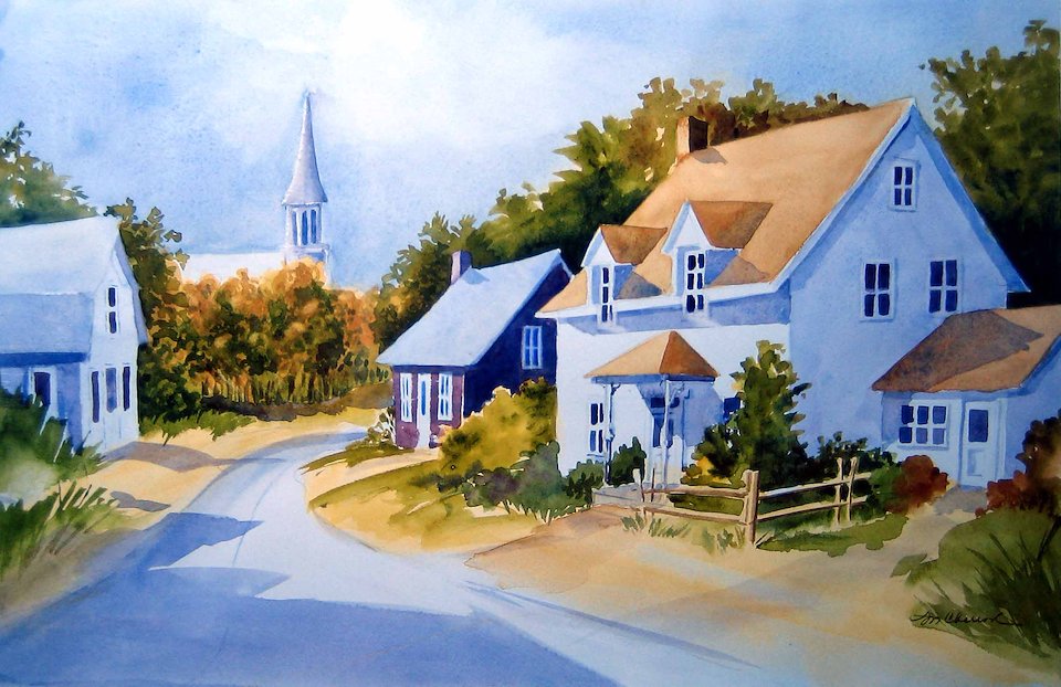 La petite école de rang, New Glasgow, Aquarelle 14" x 10"